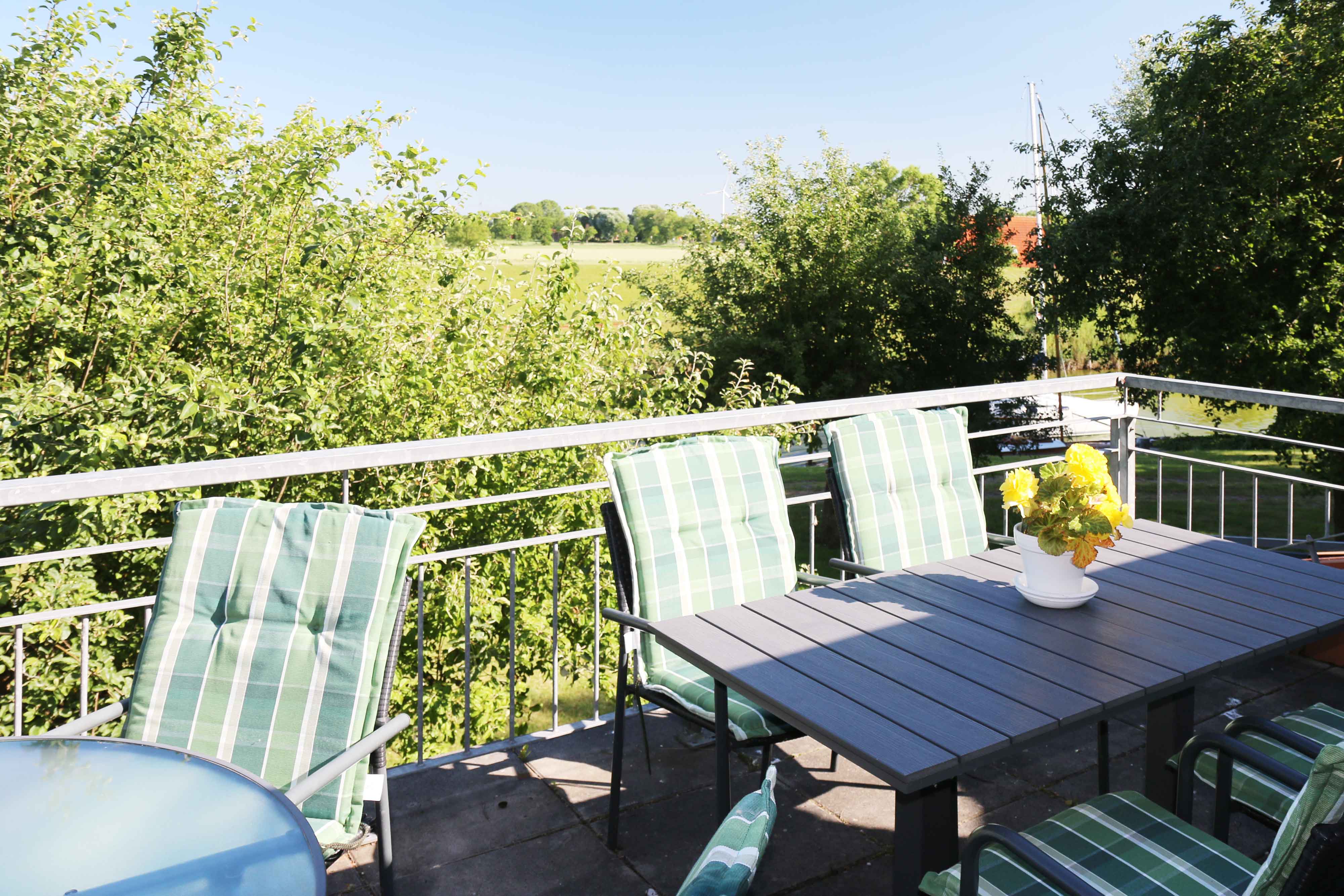Die Ferienwohnung 1 liegt auf der Westseite des Hauses mit Blick über den „ Alten Hafen“.
