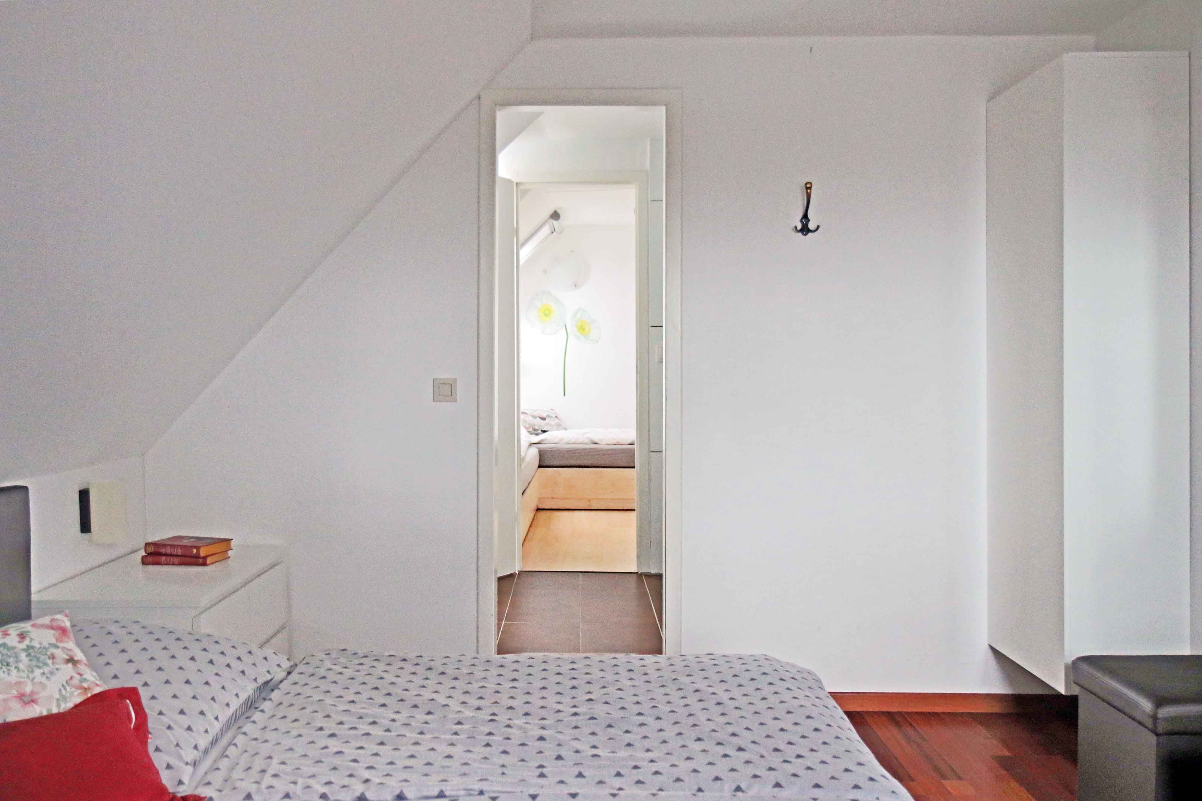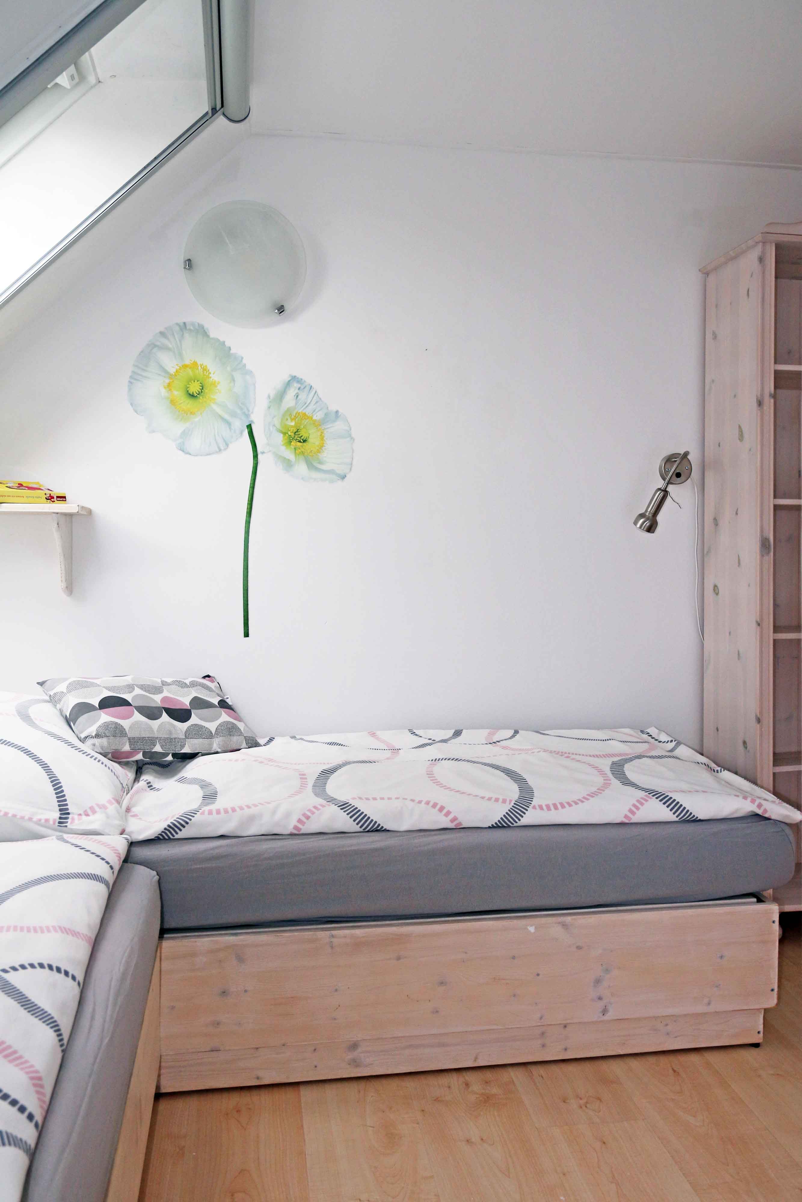 Sie verfügt über 1 Schlafzimmer mit Doppelbett (180 x 200 cm), ein Bad mit Tageslicht, ein Kinderzimmer mit zwei Einzelbetten (80 x 190 cm) und ein Wohnzimmer mit offener Küche und Essbereich. Der Küchen und Essbereich ist vom Wohnzimmer mit einem kleinen Höhensprung (ca. 15 cm) abgegrenzt. Vom Schlafzimmer in das Badezimmer ist ebenfalls eine Stufe von ca. 15 cm Höhe vorhanden.